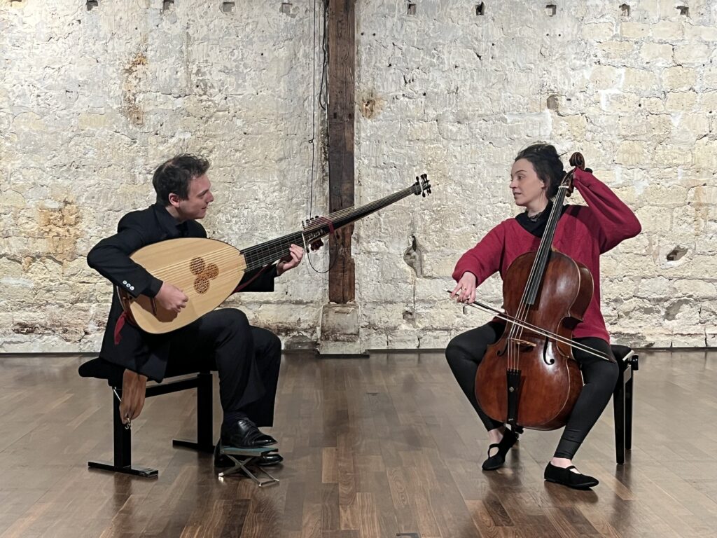 Dimanche 15 février, ils sont venus présenter leur tout dernier enregistrement en duo, *Consobrinae* dans la très belle salle « Le regard du cygne » à Paris. Plancher en bois, mur de pierres, acoustique parfaite. Quelques mots d’explication, mais surtout un magnifique concert. Nous étions invités dans l’intimité d’une époque, seconde moitié du dix-septième siècle, spectateur de l’essor du violoncelle en tant qu’instrument soliste en Italie, et de l’âge d’or du théorbe en France.